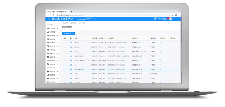收银小票,预结单,催菜单,退菜单等。打印模板支持分发,对接入相应的打印设备。