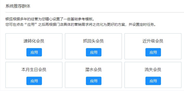 银狐的会员营销是一种高级营销方式,为您的用户推送各种消息,为用户更能了解您的各种活动,有益于与客户的长期关系。 并且还可以自定义推送,自由度高。